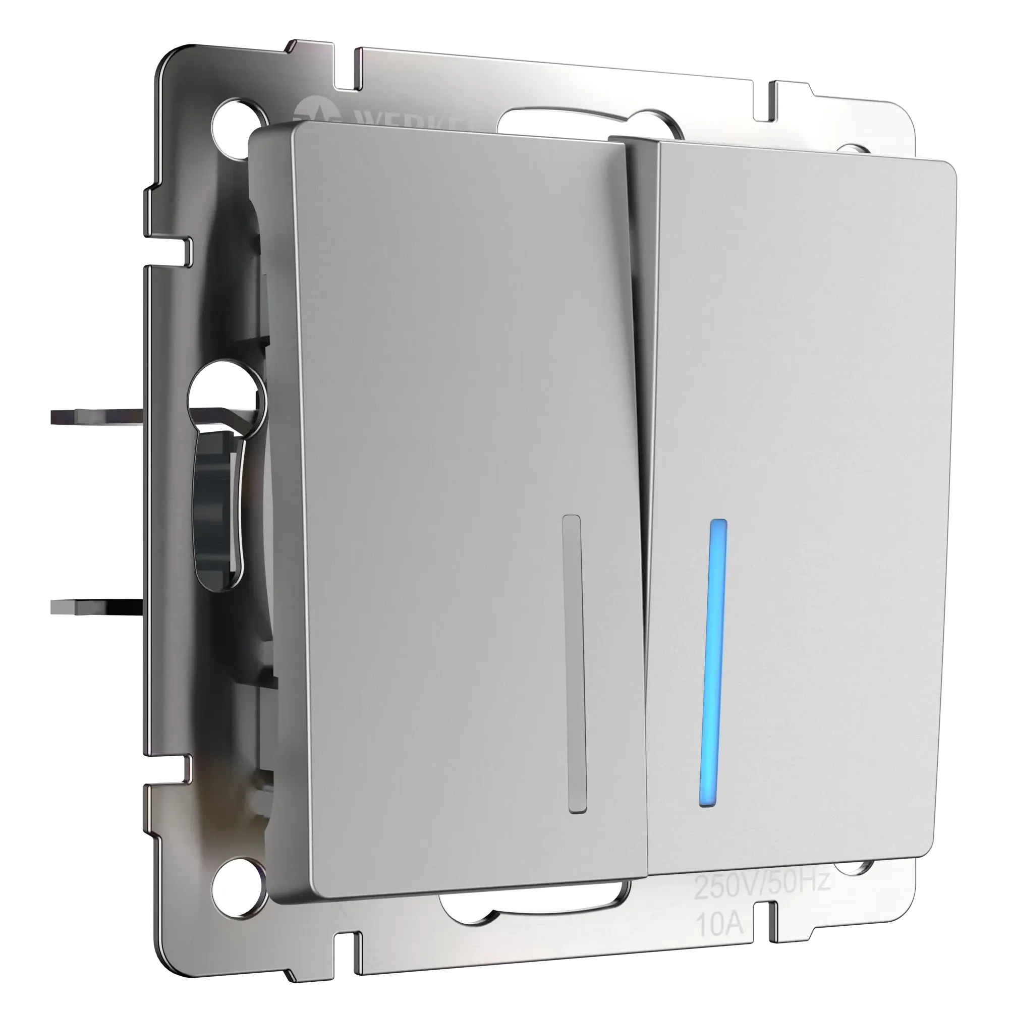 Выключатель двухклавишный проходной с подсветкой Werkel серебряный — управление светом из двух точек + комфорт в темноте