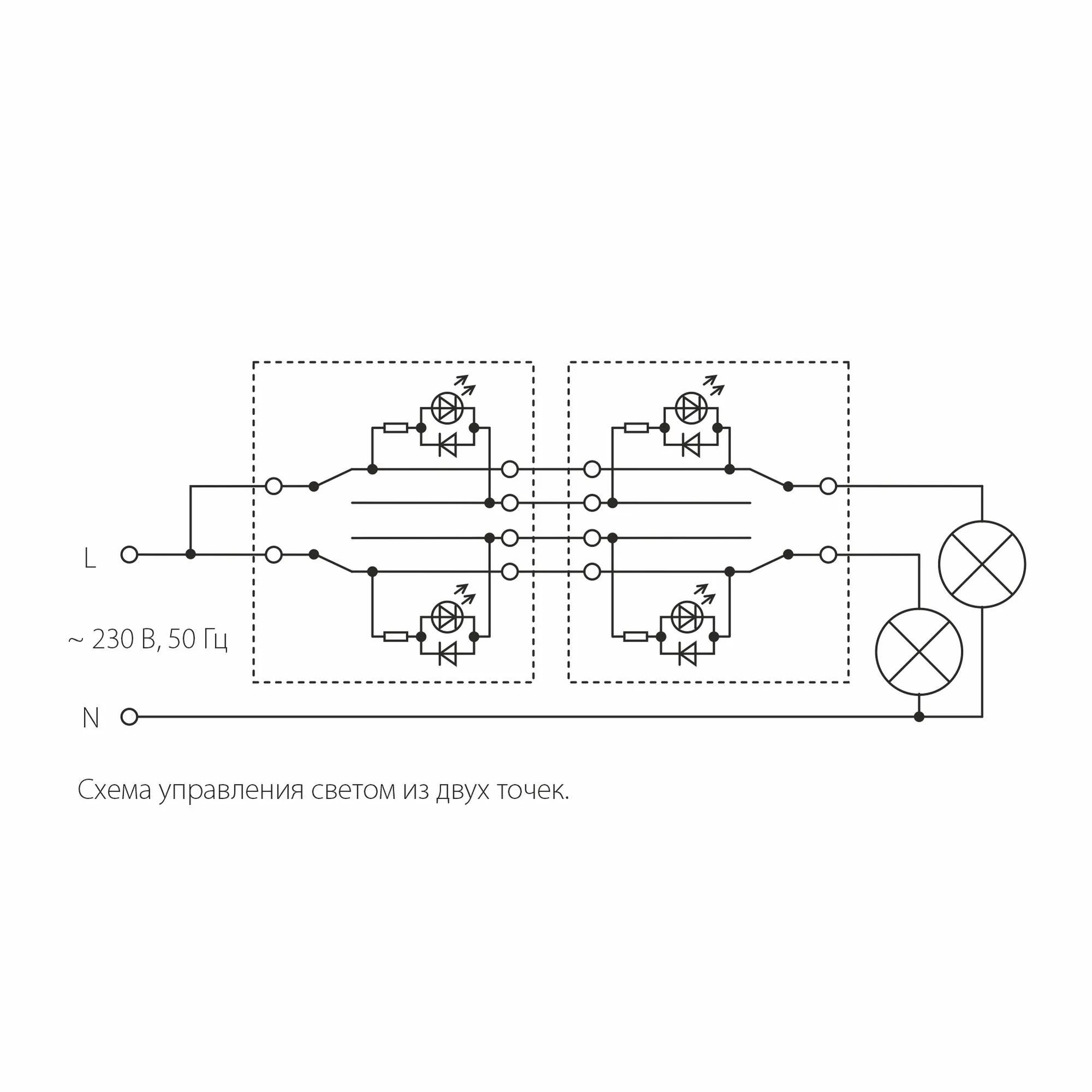 Выключатель двухклавишный проходной с подсветкой Werkel белый глянцевый — управление светом из двух точек + комфорт в темноте