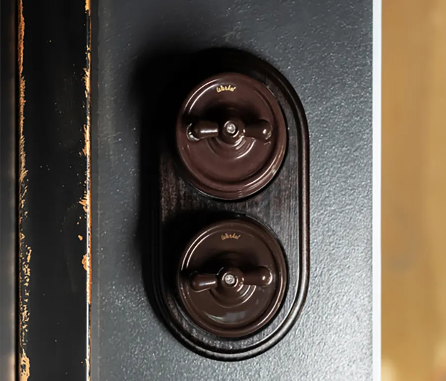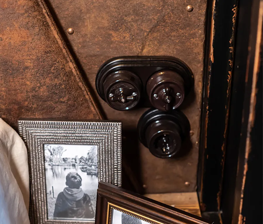 Особое внимание уделили электроустановочным изделиям. Для обновленного интерьера были выбраны механизмы в стиле ретро от торговой марки Werkel™. Коричневые керамические механизмы в сочетании с деревянными рамками серии Legend в цвете венге стали гармоничным дополнением лофт-стиля. Такие изделия не только подчеркнули индустриальный характер комнаты, но и добавили ей теплоты и уюта.