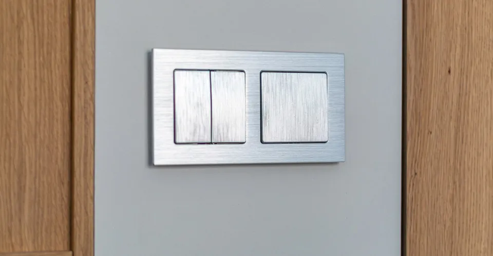 Для проекта были выбраны рамки, розетки и выключатели торговой марки Werkel. Механизмы с накладными панелями в цвете серебряный рифленый дополнены металлическими рамками из серии Aluminium . Их дизайн с эффектом шлифованной поверхности идеально сочетается с интерьером, дополняя металлические предметы мебели и декора.