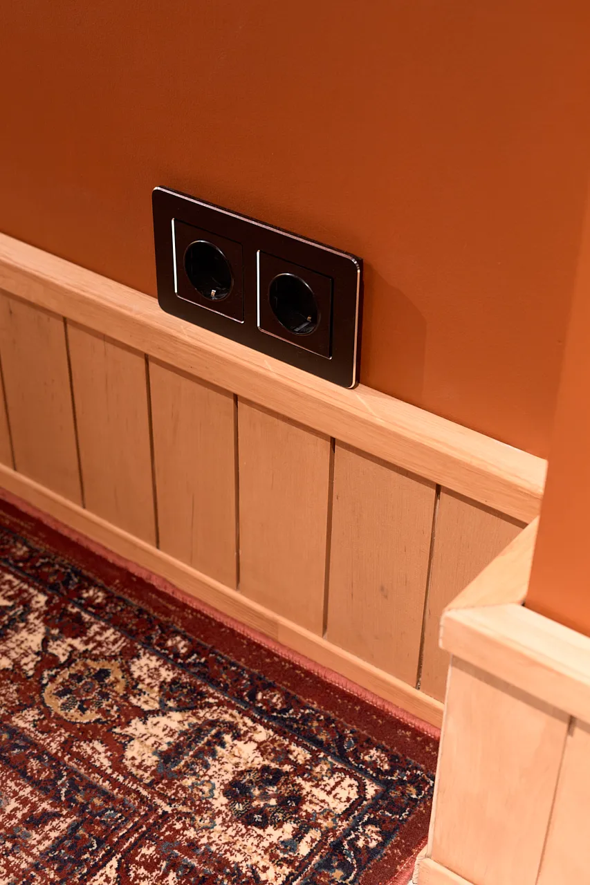 Особое внимание уделили освещению. В помывочной зоне смонтировали споты из алюминия, устойчивые к влаге, что гарантирует их долговечность даже в условиях высокой влажности. На потолке в зоне отдыха закрепили накладной шинопровод с четырьмя "умными" светильниками, которые позволяют регулировать освещение в зависимости от настроения и времени суток. Эти решения стали ключевыми для создания комфортной атмосферы.